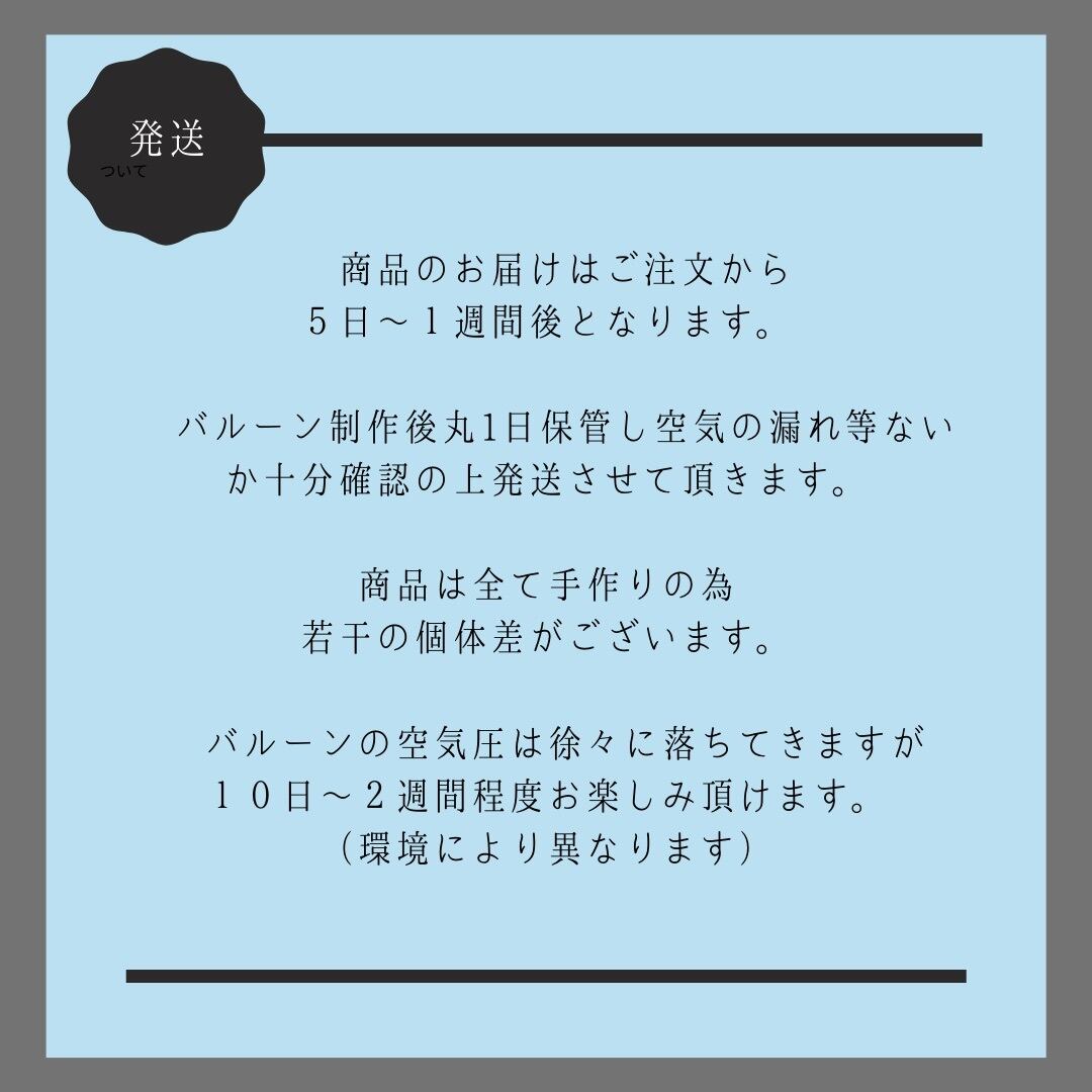 ◉バルーン制作後丸1日保管し空気の漏れ等ないか十分確認の上発送させて頂きます。