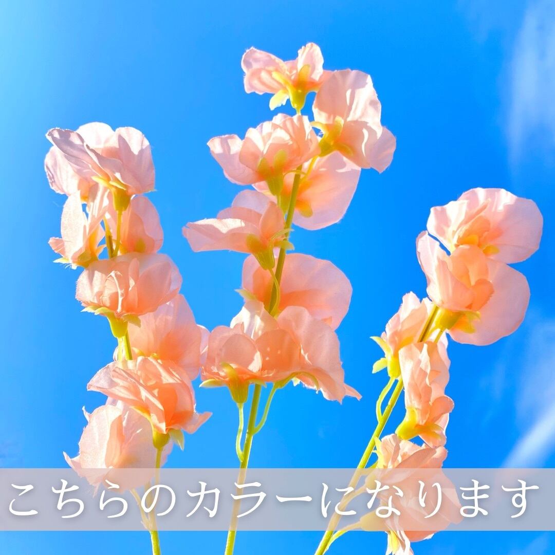 中のスイートピーは大変リアルで高品質な造花(シルクフラワー)になります。ですのでお花が傷む心配をすること無くお楽しみ頂けます。